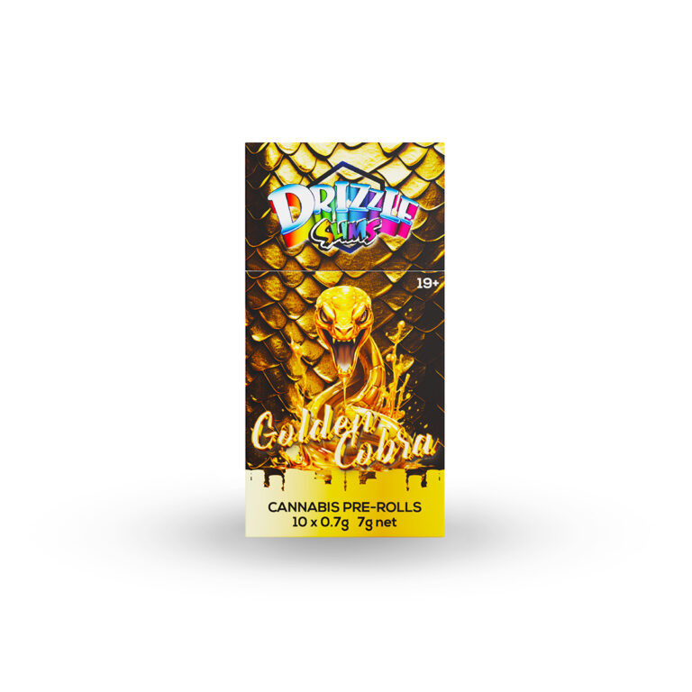 Each pack includes 10 slim pre-rolls with 0.7 grams per joint, totaling 7 grams of quality cannabis. The slim format offers excellent portion control, allowing smokers to enjoy manageable sessions without sacrificing consistency or overall smoking quality. Drizzle Golden Cobra Slims are well suited for everyday use, relaxed sessions, or convenient on-the-go enjoyment without the need to roll.