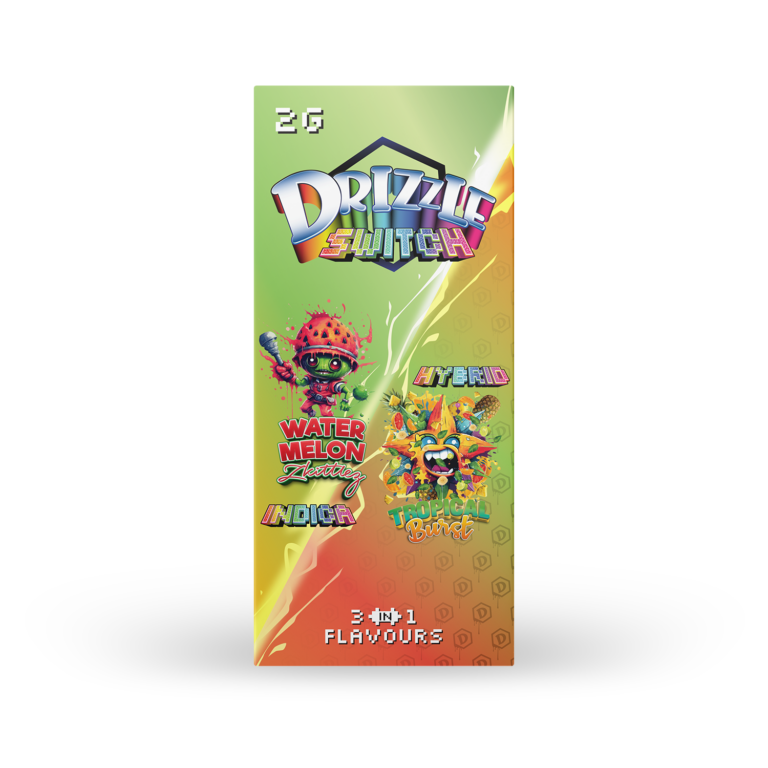 Premium 2-in-1 disposable THC vape pen from Drizzle with a larger 2g capacity for extended sessions. Switch between the juicy, candy-like sweetness of Watermelon Zkittlez and the bold, exotic fruit blend of Tropical Burst. Smooth, potent, terpene-rich hits in a convenient switch design. Available now for fast, discreet weed delivery in Ottawa and Gatineau at quickgreenca.com.